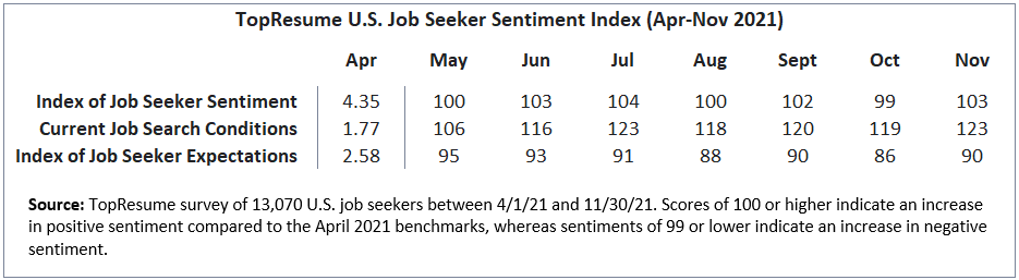 NEW YORK (December 13, 2021) — As 2021 winds down, job seekers are looking forward to new opportunities in the new year with great optimism. Today, TopResume, the world's largest resume-writing service, announced the latest results of its Job Seeker Index.