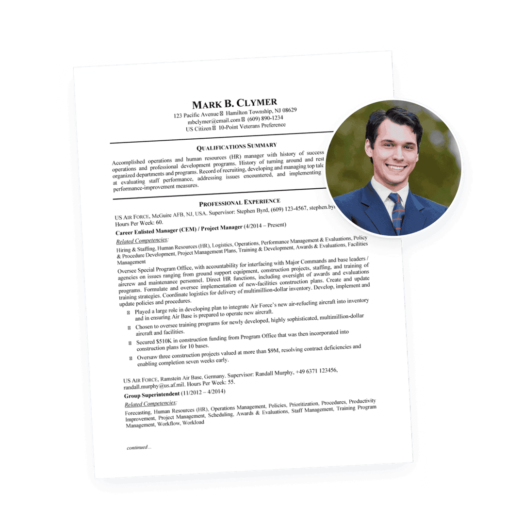 Our writers skillfully highlight your abilities while meeting all the strict standards of government agencies. They’ll make your resume rise above the rest by: